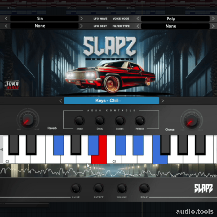 - Versatile Instrumentation: 'Slapz' boasts an array of iconic West Coast instruments. From the smooth, expressive keys to the deep, resonant basslines, each element is crafted for authenticity. The plugin also features rich pads, crisp guitars, melodious bells, and lush strings, catering to all your production needs.