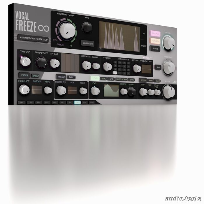 Vocal Freeze can capture voice and instrument, preserving their spectral brilliance with perpetually scanning high-rate FFT technology, and outputs a time-lapse "Stop" on any sound.