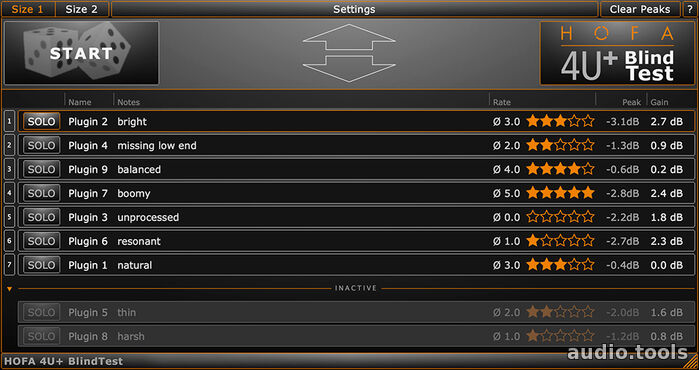 HOFA 4U+ BlindTest allows an objective comparison of equipment (e.g. plugins) inside your DAW. Only if you do unprejudiced comparisons, you will achieve the best sound possible.