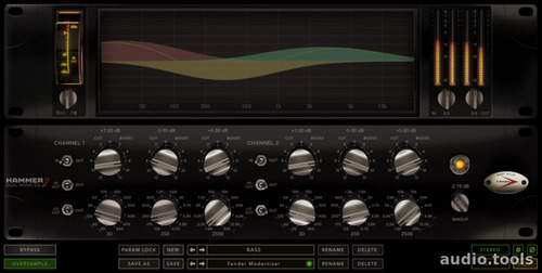 The original Hammer's top end sheen and tube-thickened low end earned it a permanent place on mix busses around the world. Hammer mk2 preserves the original design while doubling the number of available frequencies per band, including several powerful shelves. The upgraded plugin elevates the sonics further with a dead-on model of the hardware’s “default” sonic signature. A suite of beautiful gain staging and metering tools round out this compelling upgrade from Kush.
