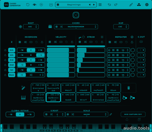 Chord Generator is a MIDI tool that generates chords with unexpected, magical variations.