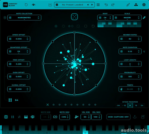 Harmony Bloom aims to effortlessly create magical sequences while letting users add their personality. It offers many parameters for customization or randomization until the desired result is achieved.