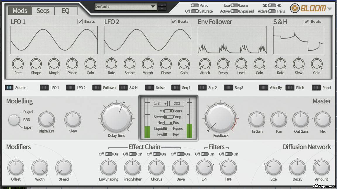 Dig a little deeper to discover new ways of using delay for sound design - use psychedelic effects like frequency shifting and chorus in the feedback path and modulate Bloom's parameters with step-sequencers and LFOs for an amazing variety of new sounds.