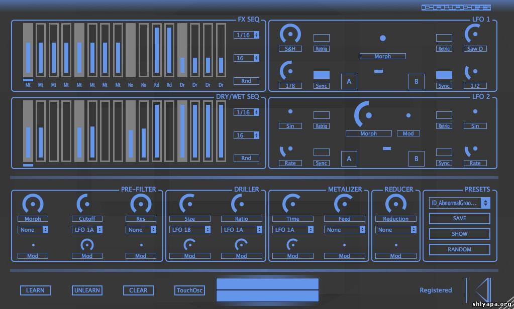 3 sound mangling effects: "driller”, "metalizer” and "reducer”