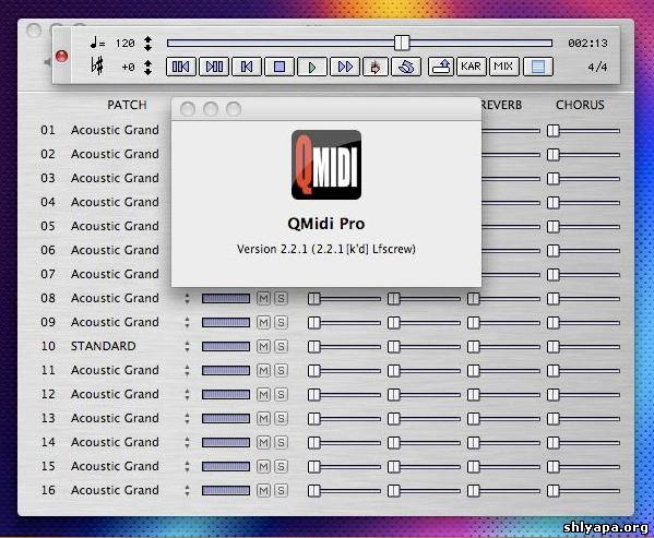 QMidi is the ultimate MIDI/Karaoke player for the Macintosh. It can organize and play many types of media files, including movies and CD+G, and allows easy text editing/synchronization. It features real time pitch shifting, time stretching and the ability to display karaoke and movie content in full screen mode, even on a second monitor.