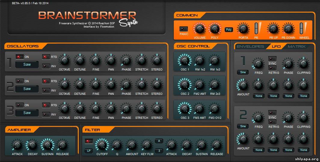 As a programmer and producer, I always wanted to combine my two passions and create a synthesizer to understand the inner workings and challenges of such a beast. I started the BrainStormer on my free time in 2012, focusing on sound quality and synthesis capabilities. After hours and hours of design, personal researches, coding, testing, and many other things I can’t list, here is finally the 0.85 beta version.