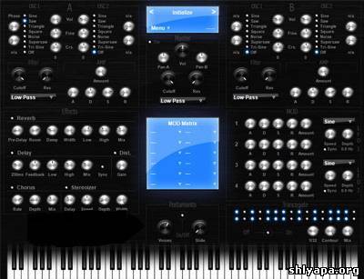 Synthetic's oscillator system is made up of two groups: Group A and Group B. Each group consists of two oscillators, a filter, and an amp envelope. The oscillators have seven different waveforms to choose from: Sine, Saw, Triangle, Square, Noise, Supersaw, & Tri-Sine. The filters have five different types to choose from: Low Pass, High Pass, Band Pass, Band Reject, & Peaking. Built-in Effects Synthetic includes five built-in effects: Reverb, Delay, Chorus, Distortion, and a Stereoizer. All of which are essential effects to make some cool sounds.