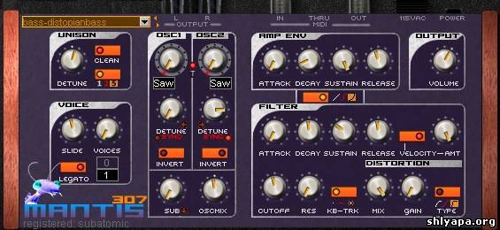Представление Mantis307 жир, скупой, и эластичный синтезатор VST, который был под влиянием хриплого звукового stylings классических синтезаторов как tb303, mc202, nord3, OSCar и juno60. Унисон убийцы особенностей и искажение, так же как агрессивное постоянное понижение времени (предсказуемый портаменто). Кроме того, 2 генератора + subosc за голос, синхронизацию, моно и полифонические способы, клавишное прослеживание и 3 типа кривой конверта. (и очень намного больше!). И с супер низким следом центрального процессора, который позволяет Вам слой много звуков богомола, не ломая пота.