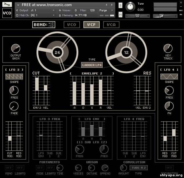 The VCO is very similar to 'Tronto' and 'DCO' but with much longer samples. The samples have long natural wave cycles of up to 15 seconds before looping, and they are all phase aligned at sample start, so the VCO acts very much like a real synthesizer. The 'VCO' is free with any purchase of Tronto or DCO and weighs in at a massive 650MB.
