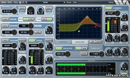 Фильтры кирпичной стены имеют переменную rolloff наклоны и могут привыкнуть к низкой частоте сокращения или высокочастотным диапазонам. Процессор de-гула использует фильтры метки, чтобы устранить 10 гармоники или гула на 60 Гц или на 50 Гц. Процессор de-гула уничтожает противные гулы строчной частоты. Процессор de-шума - звездный звучащий алгоритм Г-На Ноиза с упрощенным интерфейсом. De-plode и de-эс - таможенные процессоры; используйте de-plode, чтобы приручить звуки plosive и de-эс использования, чтобы приспособить количество sibiliants. Секция EQ - сильный и удобный уравнитель TrackPlug, с 10 группами уравнивания, 11 различных типов фильтра, чтобы выбрать из, и множество задает. Компрессор - компрессор Года изготовления вина TrackPlug, с задает скроенный к голосовой обработке.
