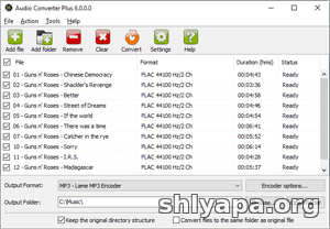 Not every converter can process tens of thousands of songs in one pass, but not Audio Converter Plus. You can specify the root folder of your audio collection and the converter will scan all subfolders for supported audio files and playlists. Audio files can also be added from the Windows Explorer context menu or using Drag'n'drop.