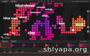 Atlas allows you to see all of your samples in one place with a map based on style and character. You can generate unlimited drum kits with your own samples and speed up your workflow using drag-and-drop to any app.