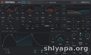An immediately intuitive three-oscillator analogue-style synth with two filters, up to 16 unison voices, copious polyphonic modulation sources and three onboard effects, Continua puts highly controllable waveform morphing at the centre of its architecture and workflow. Bringing the deft harmonic shifts of wavetable synthesis to mind, Continua's oscillators sweep seamlessly from outputting sine through square to saw waves; each of the four LFOs transitions from a double sine to square, via triangle waveshapes; and the dual independent filters morph continuously through low-pass, band-pass, high-pass and notch responses. Skew and Warp controls enable further manipulation of oscillator and LFO waveforms, and all morphing controls can be modulated for pads and textures that constantly evolve right at the oscillator/filter level.