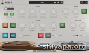 Reels is a tape emulation plugin with built-in echo section and tape-stop effect. Based on an old Japanese portable tape recorder with a very distinct Lo-Fi analog sound, Reels emulates all the imperfections of consumer reel-to-reel recorders. We have modeled three different 1/4” tape frequency responses and saturations, along with all the analog imperfections of tape recording / playback. Reels will add a very rough retro analog sound to your mixes. If you are looking for a Hi-Fi mastering tape emulation, this is not the plugin for you!