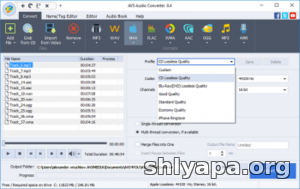 Convert audio between MP3, WAV, WMA, M4A, FLAC, M4R, AIFF, M4B, OGG, AAC, AMR, etc. Apply effects, customize output parameters, use batch mode.