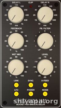 Bucket-500 is an authentic emulation of a bucket brigade (BBD) based analog delay circuit. Fuse Audio Labs added some convenient features in the digital domain including a tilt filter in the feedback path, a stereo cross-feed option and an optional delay clock LFO to allow for flanging effects. They also extended the original delay time range to 10..1000ms and included a host tempo sync facility. It's possible to switch between insert and send mode.