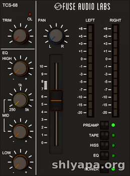 The TCS-68 cassette tape channel effect includes a faithful recreation of the preamp, the tape system and the EQ.