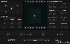 LITOTE IS A GRANULAR AUDIO EFFECT PLUGIN WHICH CAN TURN ANY SOUND INTO A DRAMATIC TEXTURE. FOUR AUDIO ENGINES CAN BE COMBINED USING A XY PAD FOR A WIDE RANGE OF VARIATIONS.