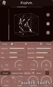 Built on top of a particle-based force field system, Frahm takes the movement of particles that it simulates and treats them as sound sources in three dimensional space. Like Transfer, but controlled indirectly, and with a bunch of sources.