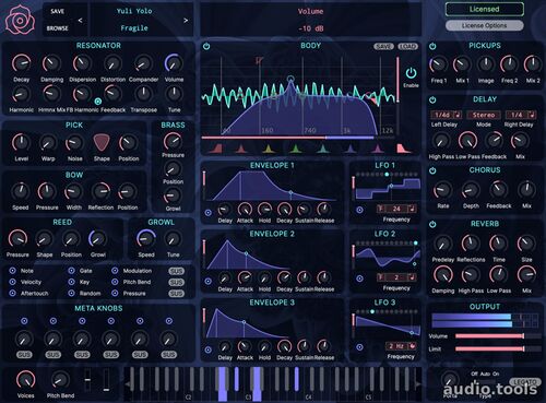 Plucked string, bowed string, reed & brass models available simultaneously.